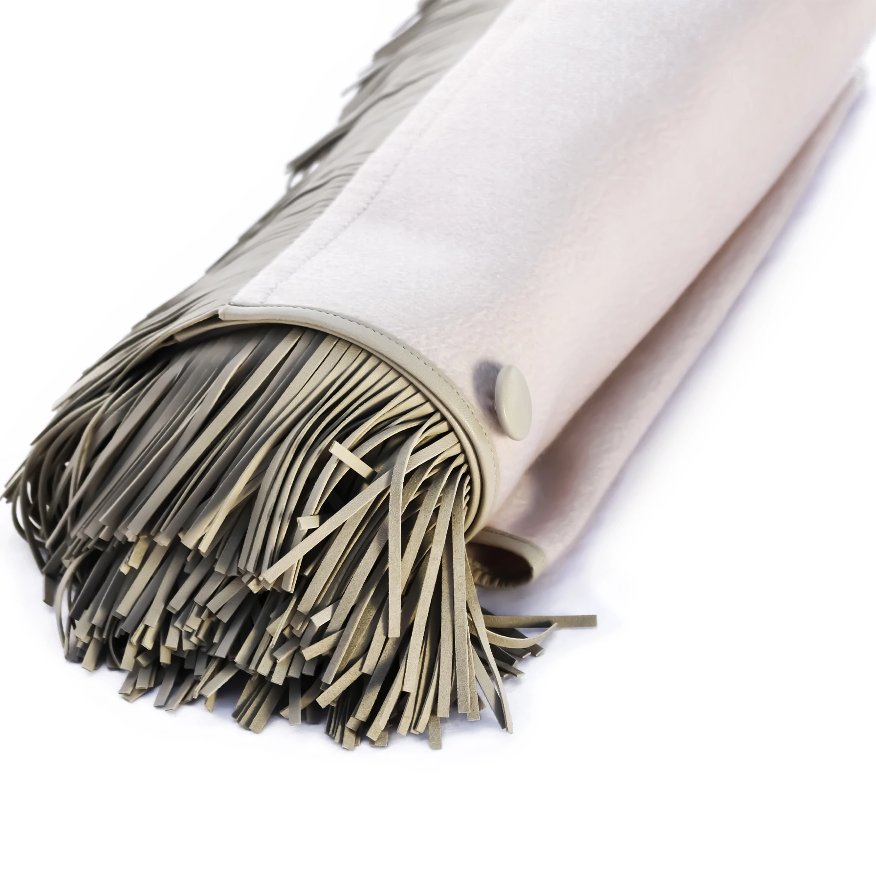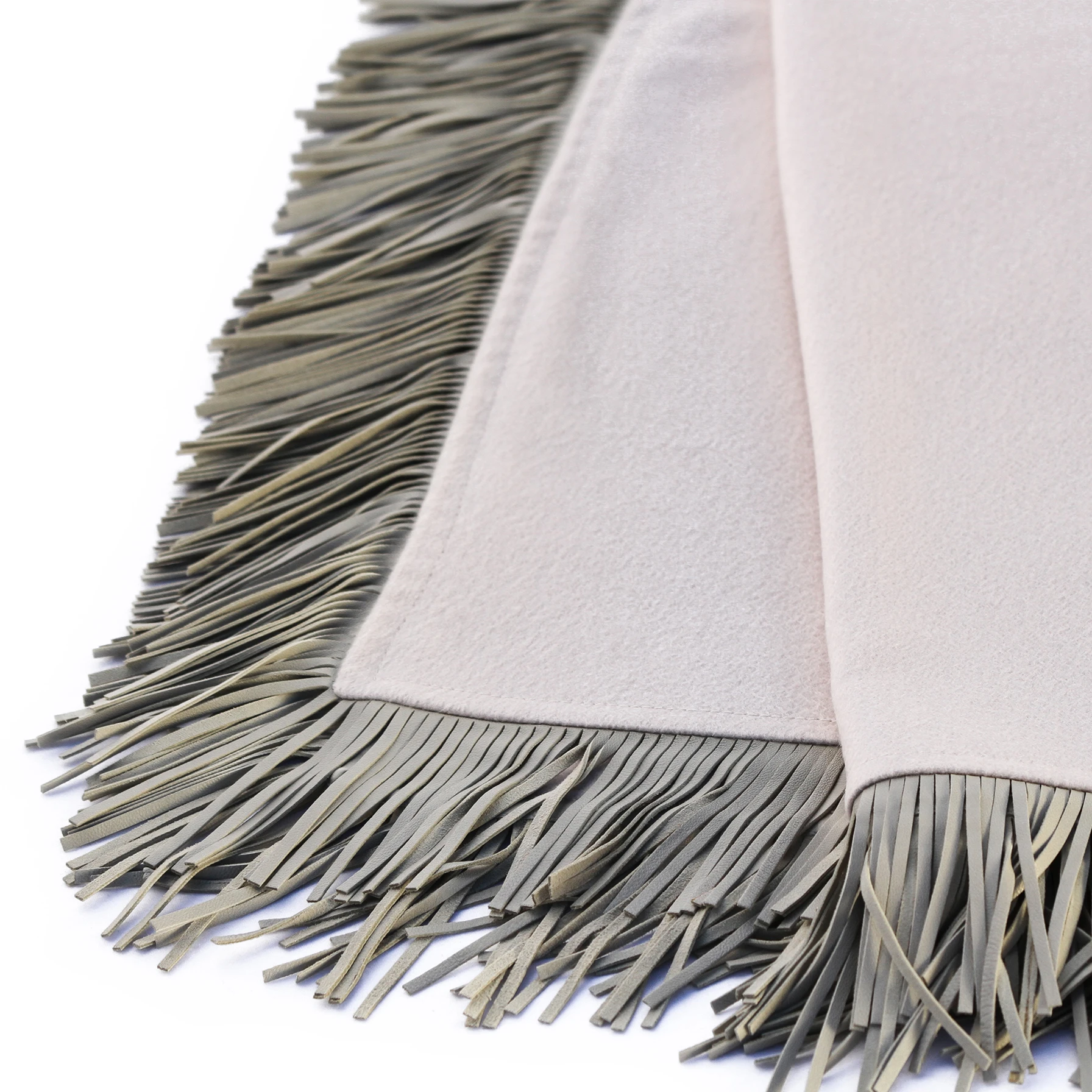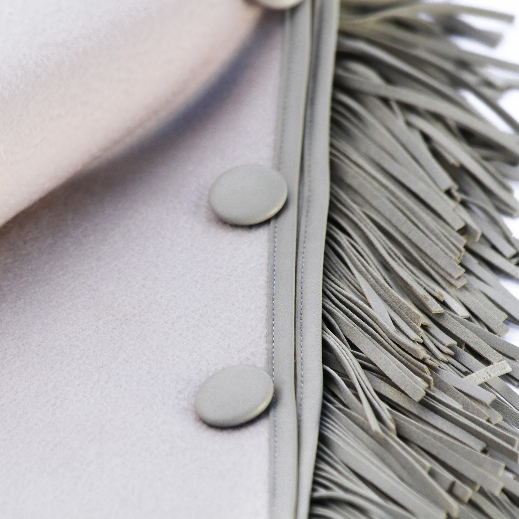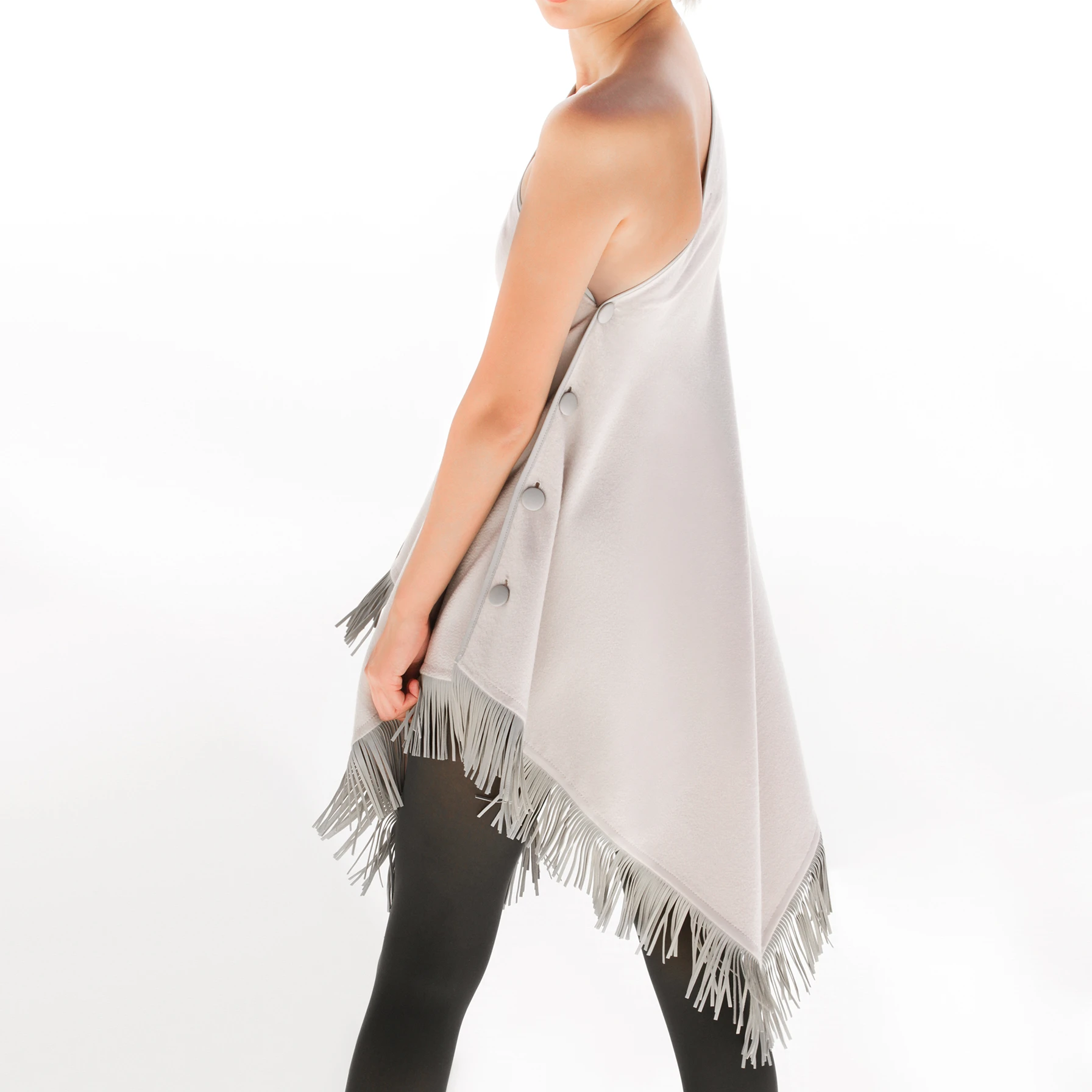 We know you see creative possibility in everything, so this one’s just for you. Forbidden City’s cashmere is the cream of the crop, and so is our detailing, this time in the form of napa fringes and handcrafted buttons. Wear as a layering piece or as a distinctive ensemble when fastened over bare shoulders to elicit envy from les Cantons Suisses to the Marais.