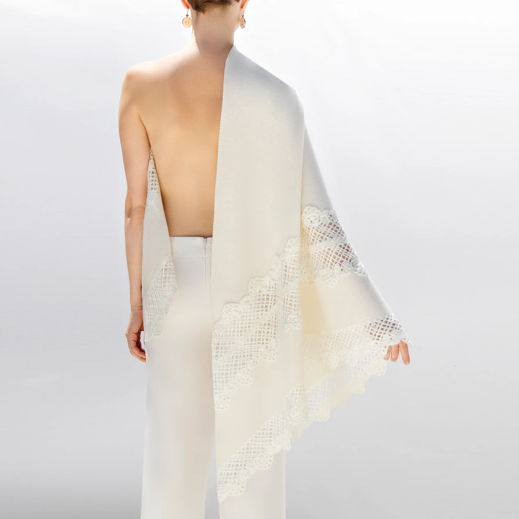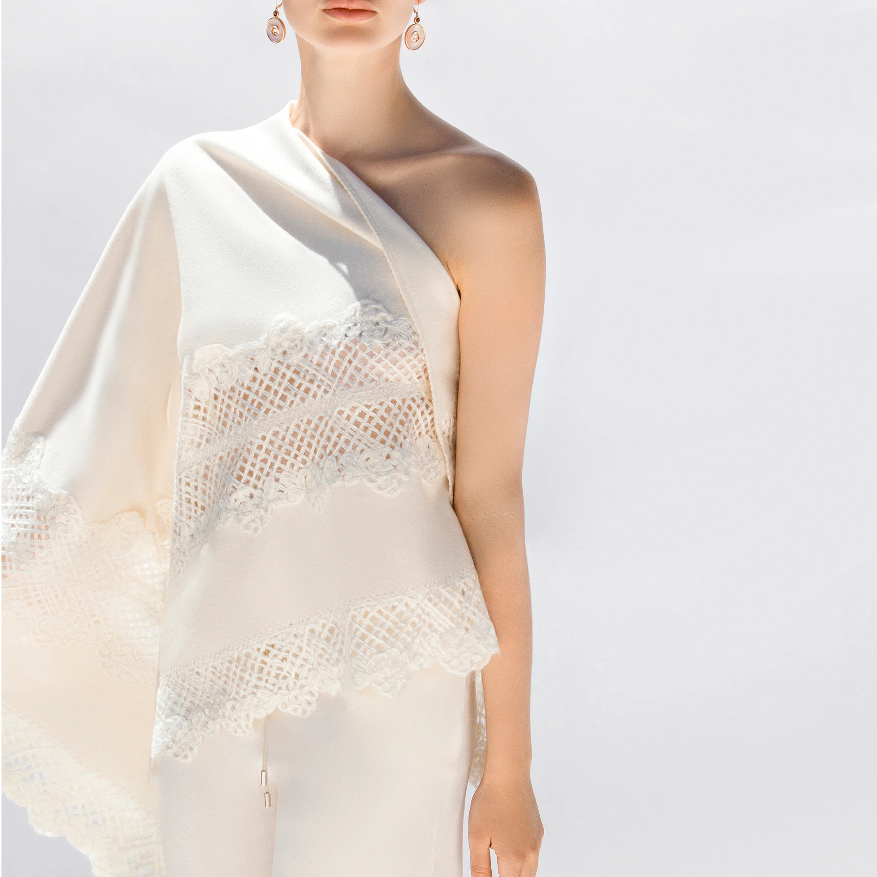 Cashmere Wrap with Lace Detailing in White