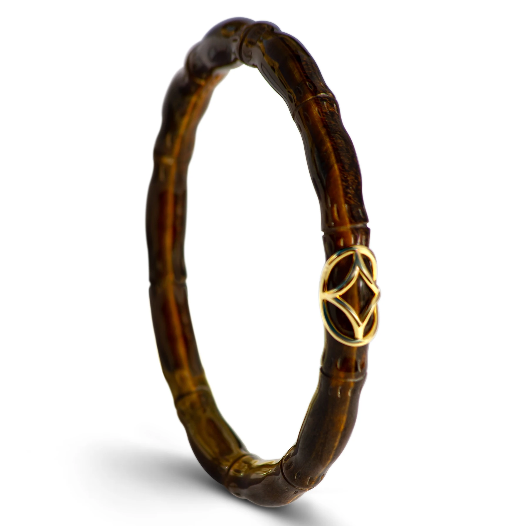 As a symbol of strength, flexibility and growth, bamboo is an enduring form you can relate to as life throws its curveballs. A timeless representation of Mother Nature's most resilient creations offers a grounding reminder of those tranquil Balinese evenings at Karengasem. Tiger’s Eye Bamboo Bracelet with 18k Gold Vermeil Filigree