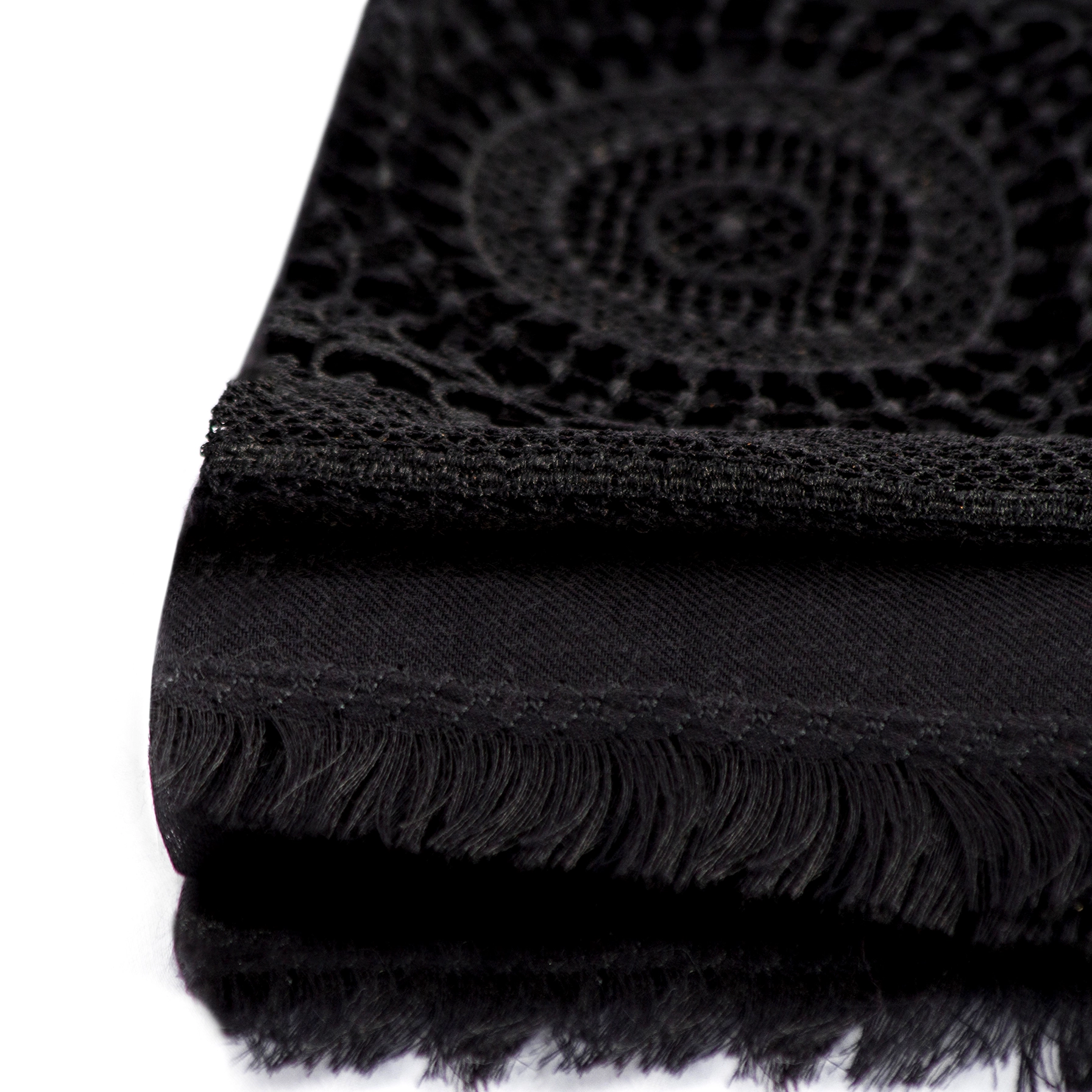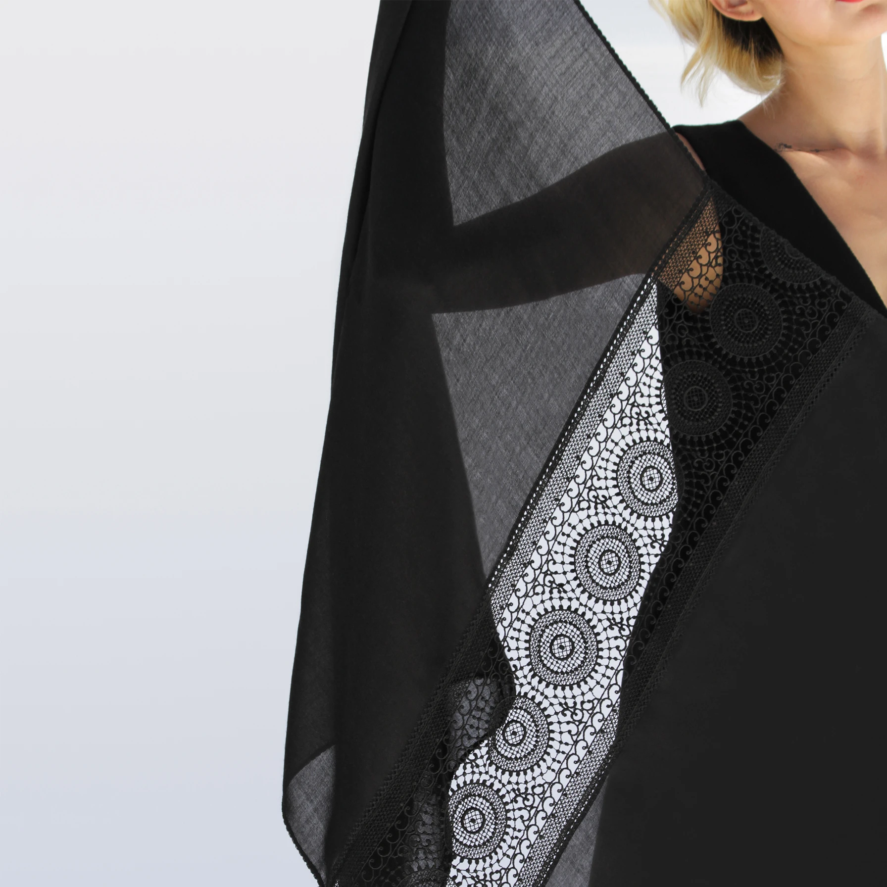 Cashmere and Silk Stole with Lace Center Stole in Black
