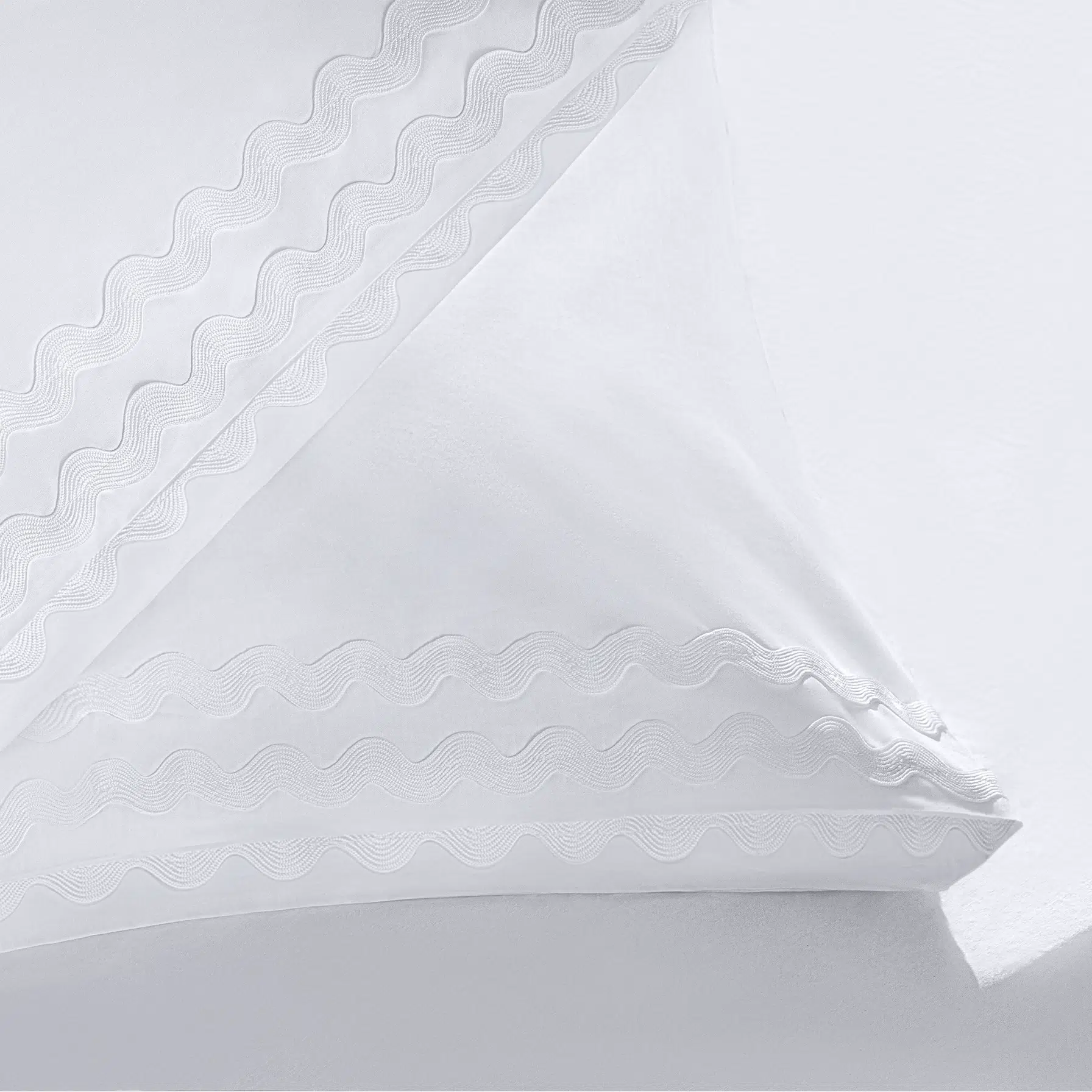 Forbidden City Pillow Sham, 50 x 90, 100% Egyptian Cotton in Percale white, with Soft Rick Rack Ribbon Trim (white), Handmade in Italy