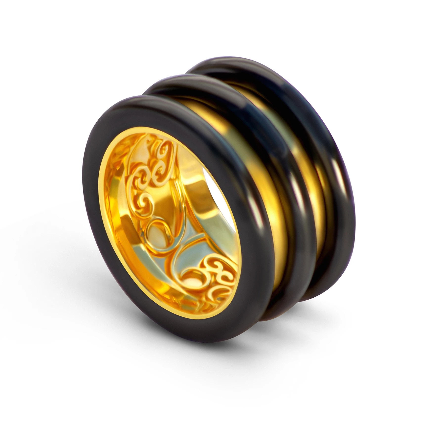 The roaring twenties are back, and your time to shine has arrived. The Simian ring in fabulous gold is pure Deco elegance, but the story is unmistakably now. From The Savoy to a secret Manhattan speakeasy, here’s a jewel that goes the distance. Dancing shoes sold separately. Forbidden City 3 Strips of Charcoal Jade Ring Matte, 18K Yellow Gold Vermeil. size US 07