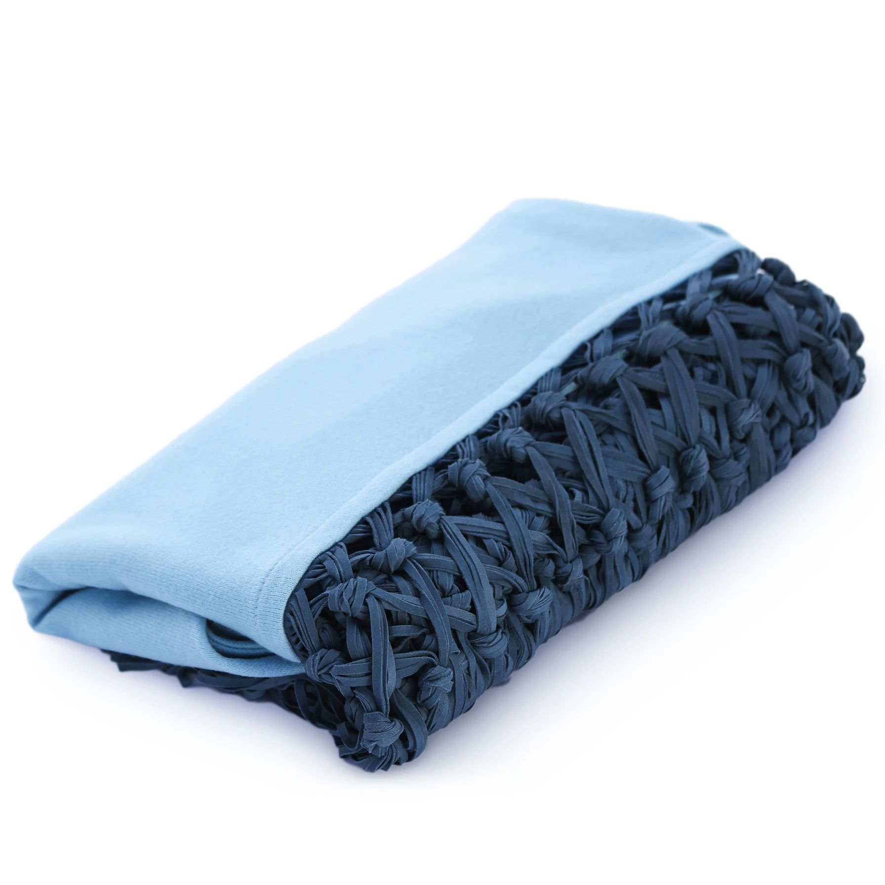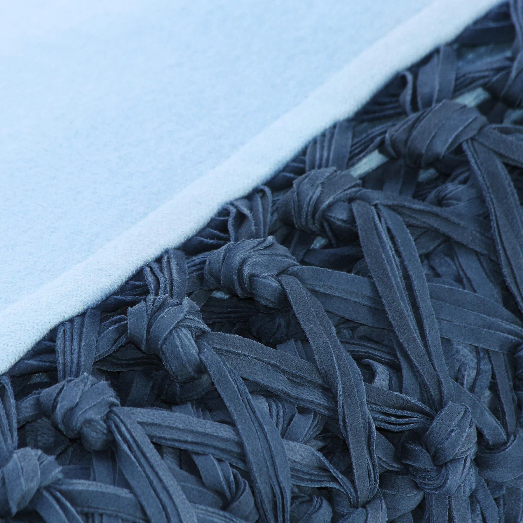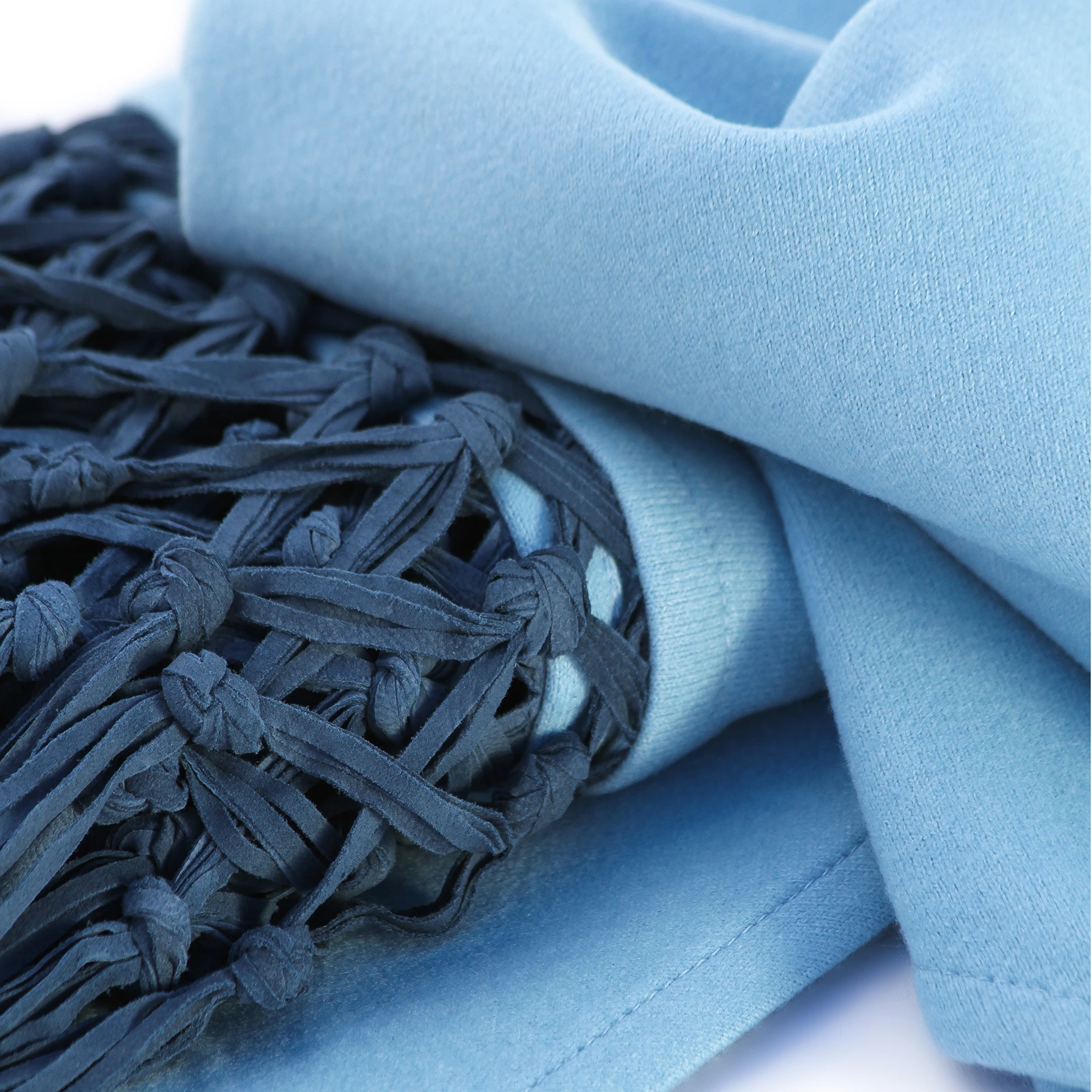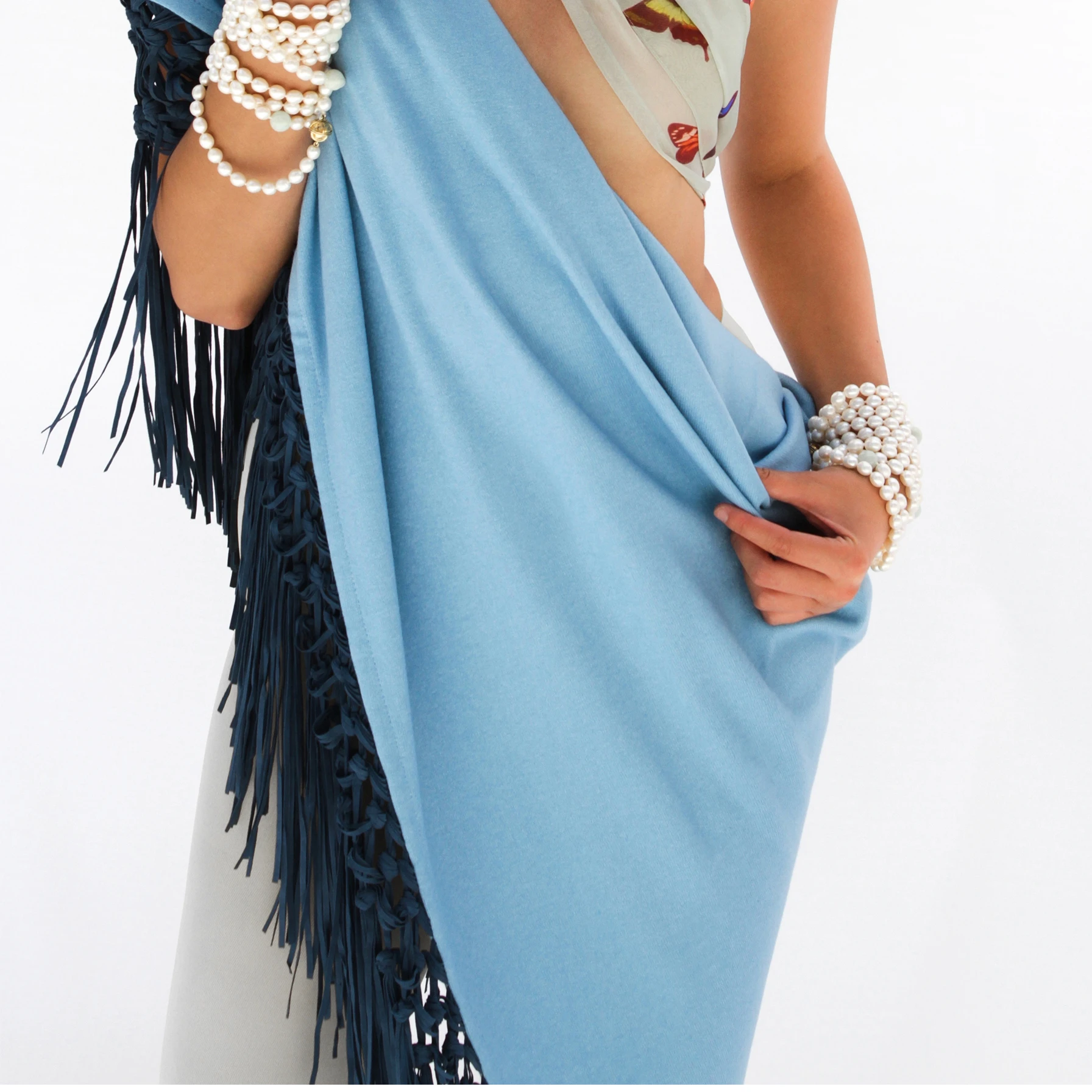 Light Blue Triangolo Cashmere and Nappa Leather Fringed Shawl